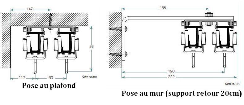 • Pose : avec supports aluminium pour plafond ou sur ferrures.