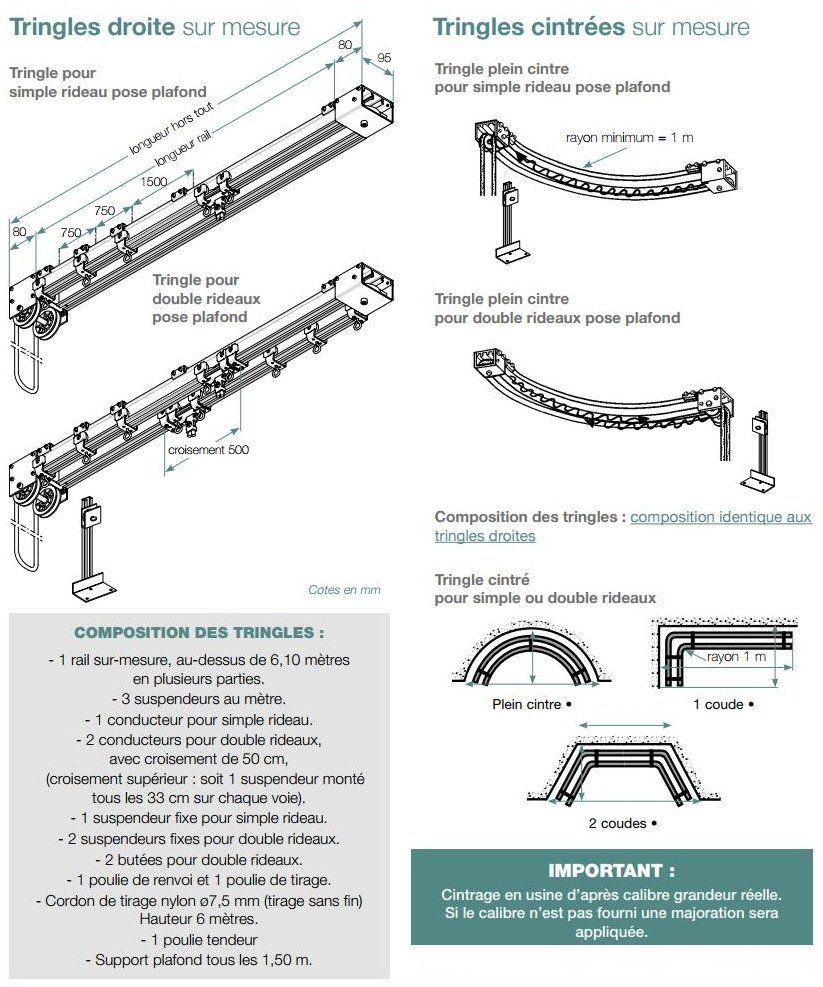 • Utilisation : tringles droites ou cintrées, avec tirage à droite ou tirage à gauche